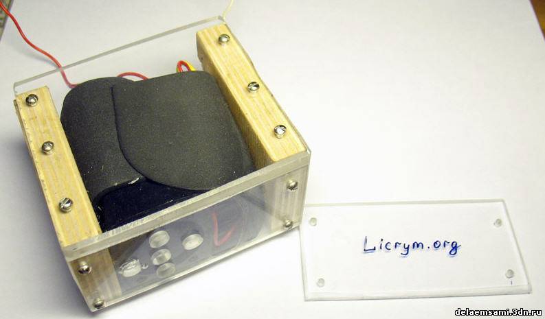 Корпус сделан из 5 мм оргстекла и фанеры. Корпус достаточно прочен и выдерживает удары, вес взрослого человека, поэтому выключить сирену разбив ее невозможно.
